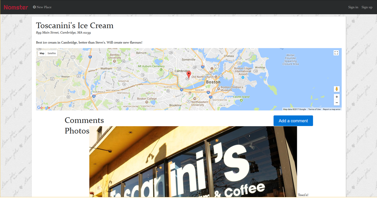 A Yelp clone that integrates with the Google Maps API and includes features like user comments, star ratings, image uploading, and user authentication.
